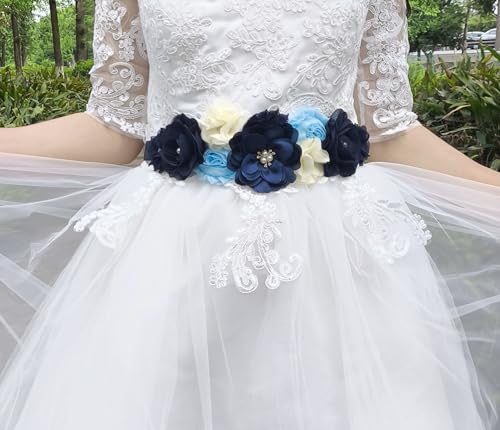 • ELEGANT DESIGN: Navy blue maternity sash belt featuring delicate floral embellishments, perfect for adding a feminine touch to maternity dresses and gowns