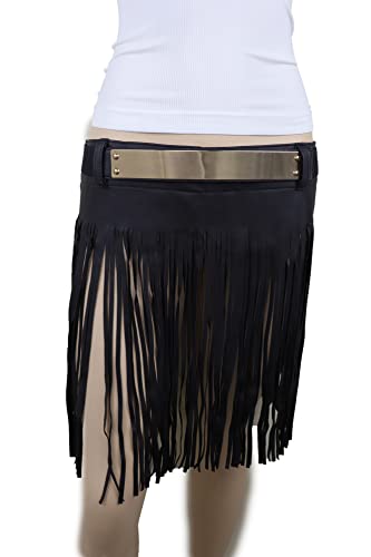 More information about Women Black Skirt Fashion Belt - Wrap Around Long Faux Leather Waistband Gold Metal Plate S M