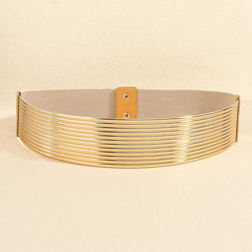 YOU&M Women's Gold-Stripes Waist Belt Elastic Stretch Corset Girdle Belt for Dress Decor Luxury Smooth Comfor Belt 7