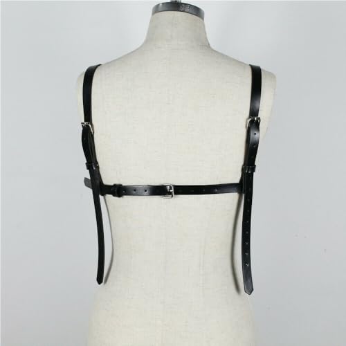 Women Leather Body Belts Punk Adjustable Faux Leather Body Chest Belt Clubwear with Fancy Buckles Rings 5