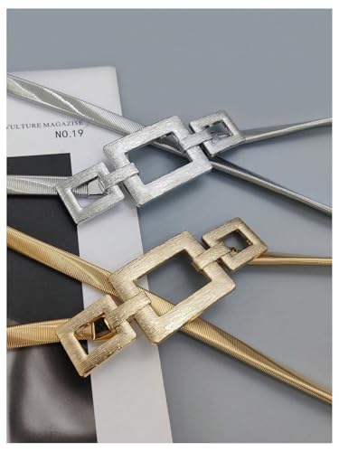 HOT ! GORGLITTER Women's Square Ring Linked Buckle Concho Belt Metallic Dress Belts Elegant Body Chains