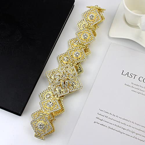 Full Rhinestone Prismatic Moroccan Caftan Belt Metal Waist Chain Ethnic Wedding Bridal Accessories (Color : Rose Gold, Size : 1) 5