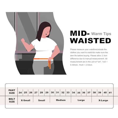 • Women belt in x-small to x-large sizes, belt wide 1.25 inch, suit for women pants size from 24 to 41 inchs; Please measure your waistline to make sure the item fits
