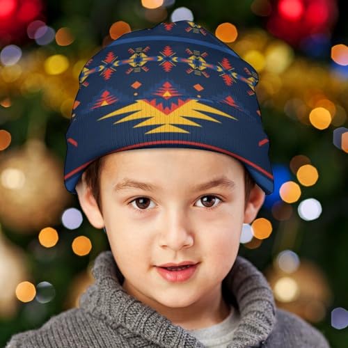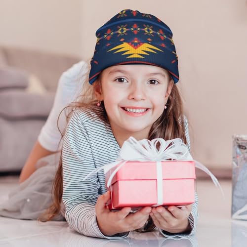 Native American Pattern Kids Beanie Hat for for Girls Boys Children Cap Winter Knitted Chemo Cancer Headwear Accessories Gifts Decoration Black 7