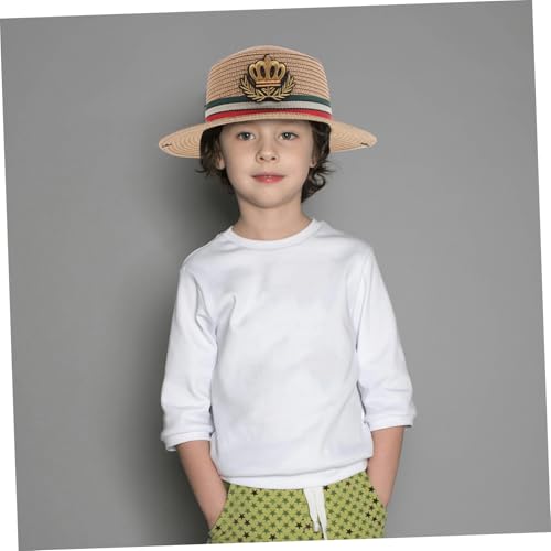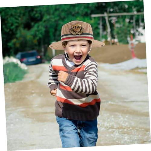 BESTYASH Beach Hat Breathable Straw Sun Protection Wide Brim Cap for Boys for Spring Summer Autumn Outdoor Activities Khaki 7