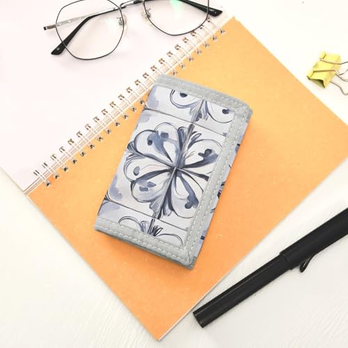 Blue Football Design Durable Nylon Fabric Wallet for Boys and Girls - Multi-Functional with 2 Clear Pockets, Zipper Coin Compartment, 3 Card Slots & Keyring 2