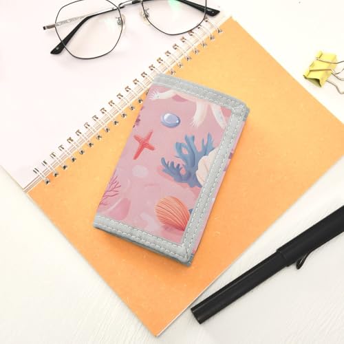 HOT ! Axolotl Coral Cove Durable Nylon Fabric Wallet for Boys and Girls - Multi-Functional with 2 Clear Pockets, Zipper Coin Compartment, 3 Card Slots & Keyring