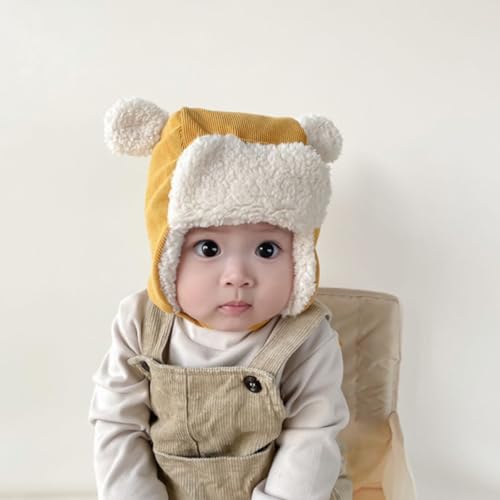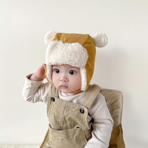 NOLITOY Hat for Toddlers Thickened Trapper Hat Soft Material Design for Warmth and Comfort Cute Bear Ears for Outdoor Activities Yellow 1