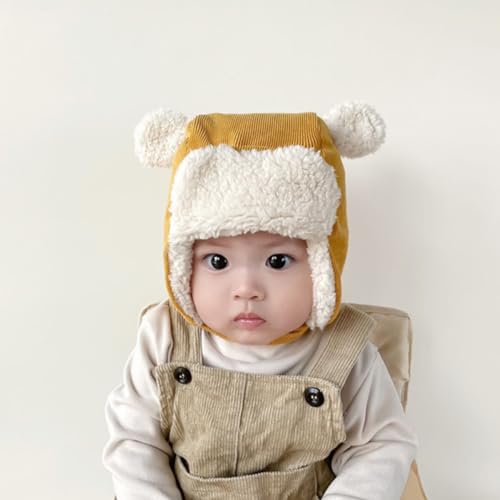 NOLITOY Hat for Toddlers Thickened Trapper Hat Soft Material Design for Warmth and Comfort Cute Bear Ears for Outdoor Activities Yellow 5