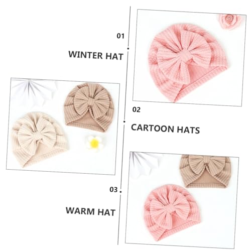 4pcs Decorative Warm Hat Comfortable Elastic Bowknot Knitted Winter Hats for Boy Girl Thick Design for Warmth Present for Friends Random Color 2