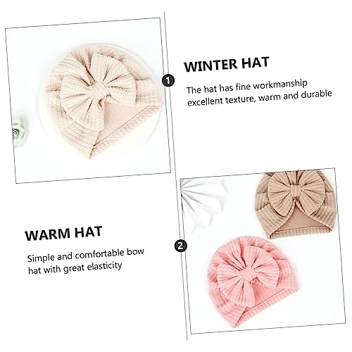 4pcs Decorative Warm Hat Comfortable Elastic Bowknot Knitted Winter Hats for Boy Girl Thick Design for Warmth Present for Friends Random Color 5