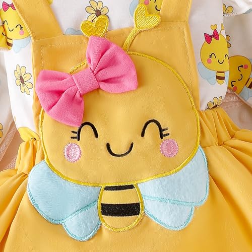 • Charming and Fun Design: This adorable baby girl outfits set features a playful all-over cartoon animal print on the long-sleeve romper, bringing a cheerful and lively vibe. The coordinating suspender skirt showcases a matching central animal graphic that complements the romper perfectly, enhanced with a tiny 3D bow for an extra touch of cuteness. Delicate ruffle accents on the romper’s shoulders and convenient snap buttons at the bottom make diaper changes quick and easy.