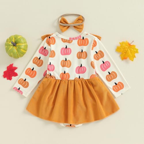 My First Halloween Baby Girl Outfit Newborn Pumpkin Pie Romper Skirt Happy Thanksgiving Fall Clothes with Headband 1