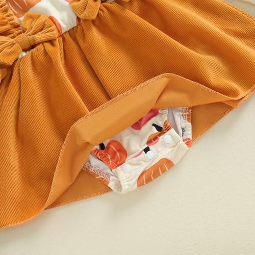 My First Halloween Baby Girl Outfit Newborn Pumpkin Pie Romper Skirt Happy Thanksgiving Fall Clothes with Headband 6