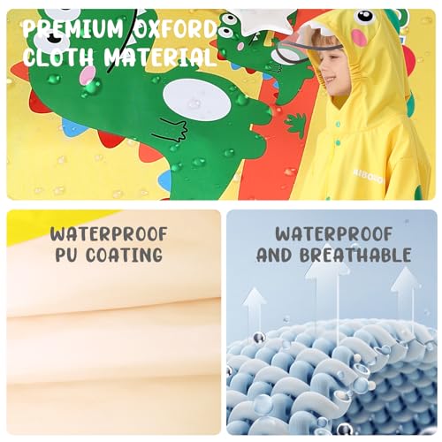 • Durable & Reusable - Our kids rain jacket is made of high quality 210D 100GSM oxford cloth and super waterproof PU coating, wear-resistant, tear-resistant, durable and reusable, so rain coats can be reused for long periods of time. Our kids rain poncho is tough and tensile enough to resist heavy rain and strong wind. Odourless and eco-friendly materials do no harm to children's health.