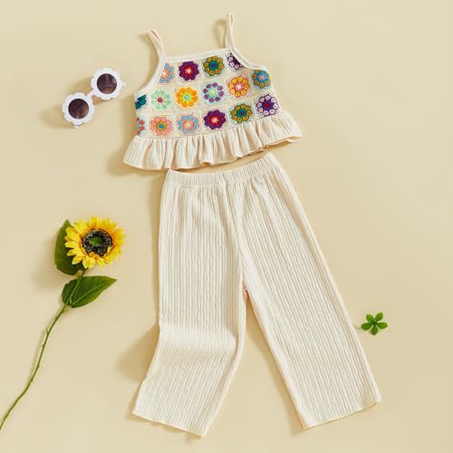 Toddler Baby Girl Summer Outfits Crochet Camisole Top and Linen Pants 2PC Kids Bohemian Beach Clothes for Girls 6