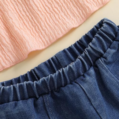 VISGOGO Toddler Baby Girl Crochet Outfit Floral Crocheted Camisole Top Linen Tassel Bohemian Floral Tops + Denim Pants Set 4