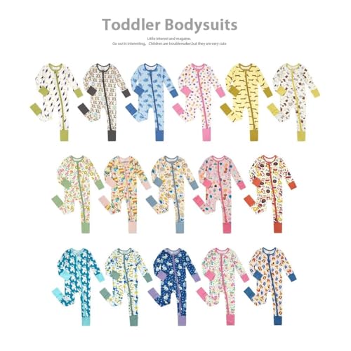 Teach Leanbh Unisex Baby Bamboo Viscose Pajamas with Mittens and Feet Cuffs Soild Printing 2 Way Zipper Long Sleeve Romper 6