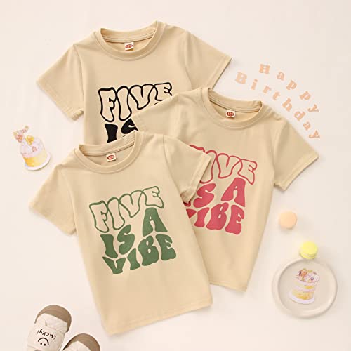 IZYJOY Girl Boy 5th Birthday Shirt Five is A Vibe Birthday T-Shirt Kids 5 Year Old Party Tee Top Fifth B-Day Outfits 4