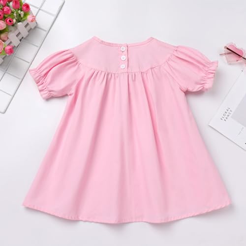 ODASDO Baby Girls Toddler Kids Smocked Bishop Dress Embroidery Short Sleeve A-line Birthday Party Dresses Summer Clothes 3
