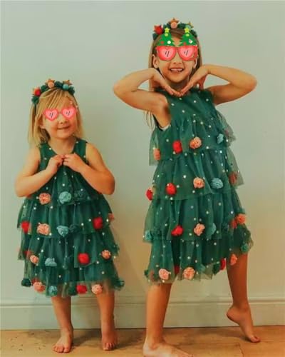 Toddler Baby Girl Christmas Outftis Star Sequin Sleeveless Layered Tulle Tutu Dress Plush Ball Green X-mas Tree Dress 5