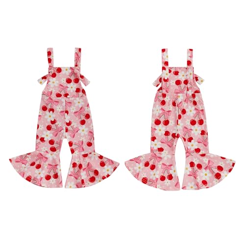 Emmababy Toddler Cherry Outfits Flare Romper Girls Strawberry Jumpsuit Baby Bell Bottoms Floral Suspender Wide Leg Jumpsuit 6