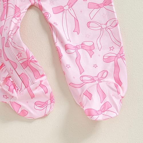 SAYOO Newborn Coming Home Outfit Baby Girl Zip Up Ruffle Frills Footie Romper Jumpsuit One-Piece Baby Play Hospital Clothes 5