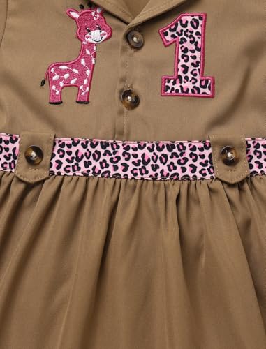 • Unique Design: Toddler girl safari outfit leopard print safari dress girls wild birthday outfit, short sleeve khaki pleated dress, embroidered with the letter "1" and a giraffe at chest, special for first birthday party. With 2 buttons at top, belt loops with buttons, invisible zipper at one side, cute and stylish. First birthday outfit for baby girl one birthday safari outfit, jungle themed outfit for girl zookeeper dress, with hidden side zipper, easy to put on and take off