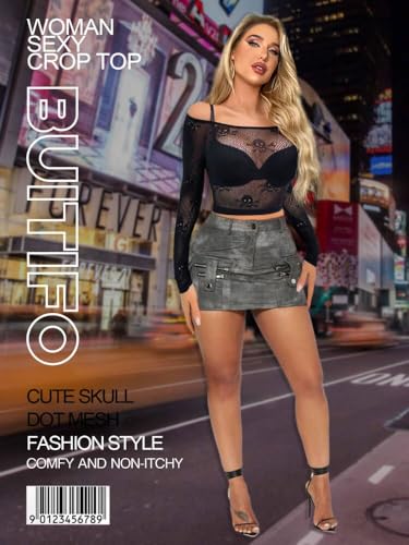 • Woman sexy crop top,cute skull dot mesh fashion style,comfy and non-itchy