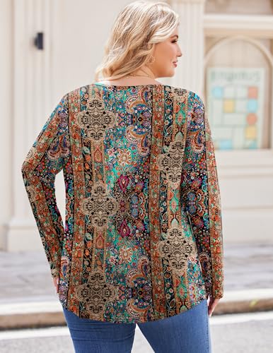 IN'VOLAND Womens Plus Size Long Sleeve Shirts Fall Tunic Top V-neck T-Shirt Button Up Dressy Casual Blouse 1X-5X 4