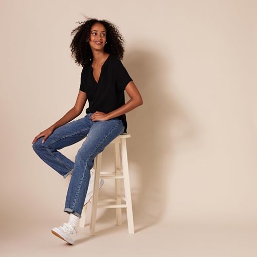 HOT ! Amazon Essentials Women's Relaxed-Fit Short-Sleeve Woven Blouse