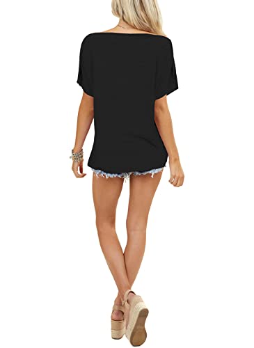 INFITTY Women's Off Shoulder Tops Short Sleeve Casual Loose Batwing Shirts Oversized Blouse Tunic 6