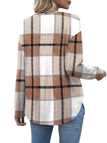 OFEEFAN Womens Tops Long Sleeve Curved Hem Tunic Tops V Neck Henley Shirts for Women Dressy Casual with Pocket 4