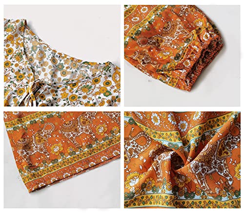 KAYWIDE Women's Casual Boho V Neck Top Loose Floral Printed Long Sleeve Beach Shirts Blouses 2