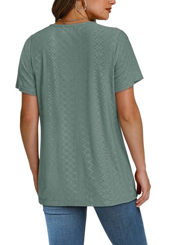 SAMPEEL Womens Summer Tops Trendy 2025 Eyelet Crossed V Neck T Shirts Loose Casual Short Sleeve Tshirts Shirts Fashion 3