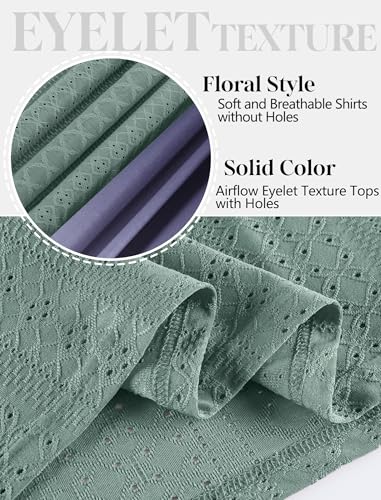 • Fabric type: Material: 95% Polyester, 5% Spandex. The eyelet embroidered fabric of this short sleeve shirts is soft, stretchy, breathable, airflow, skin-friendly, and comfortable to wear all day.