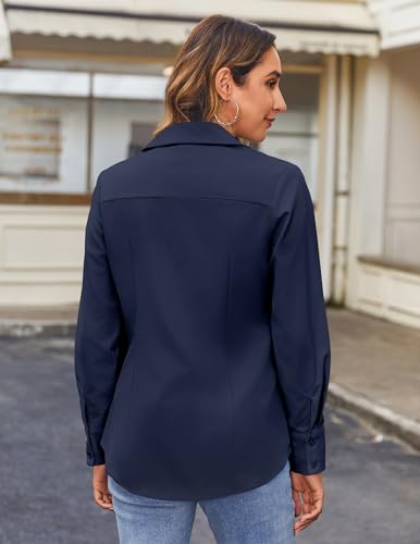 HOTOUCH Women's Button Down Shirts Long Sleeve Dress Shirt Slim Fitted Work Tops Collared Dressy Casual Business Blouses 5