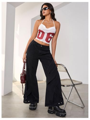MakeMeChic Women's Y2k Jersey Shirts Letter Print Top Halter Top Draped Tie Backless Lace Up Tank Crop Tops 2