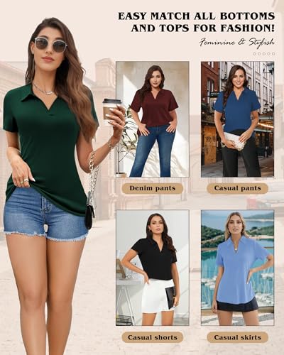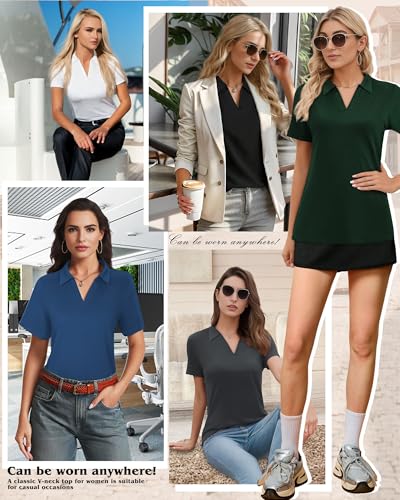 Polo Shirts for Women, V-Neck Business Casual Tops for Women, Summer Lapel Collar Tunic Tops Short Sleeve Work Blouses 5