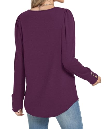 OFEEFAN Long Sleeve Shirts for Women Blouses Dressy Casual Womens Sweaters Puff Sleeve Fashion Clothing Tops with Buttons 3