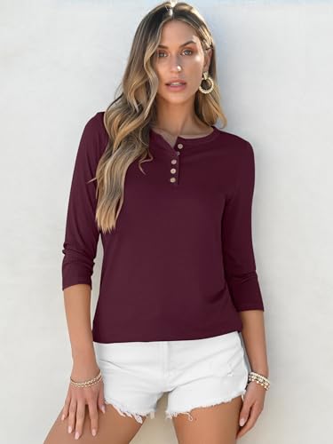 ANRABESS Womens 3/4 Sleeve Tops Henley Shirts Casual Trendy Button T Shirts 2025 Summer Basic Tunic 5