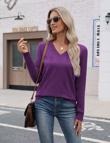 Zeagoo Womens V Neck Sweaters Shirts Long Sleeve Lightweight Ribbed Knit Pullover Sweater Blouse Tops with Buttons Oufits 2