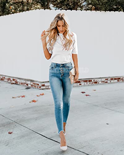 • ✔ Basic, casual, cute, trendy, solid color, mock neck, short sleeve, half sleeves, turtleneck, lightweight, stretchy. The top goes great with any body shape,you will feel close but fitted/relaxed under this t shirt. It is great match with skirt, denim jeans, shorts and leggings