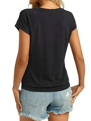 Womens V Neck Cap Sleeve T Shirts Banded Bottom Top Loose Fit Short Sleeves Tee Casual Summer Basic Tops 2025 3