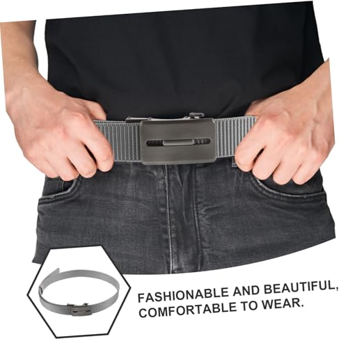 Men's Reversible Nylon Ratchet Belt Adjustable Automatic Buckle Web Belt for Jeans and Golf Versatile Grey Color Comfortable Fit for Waist 5
