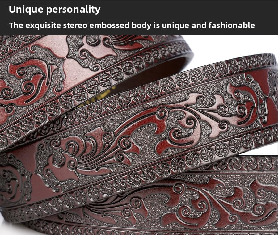 Men's Genuine Leather Belt for Casual & Dress - Floral Embossed Design, Heavy Duty Alloy Buckle, Soft Cowhide Strap 7