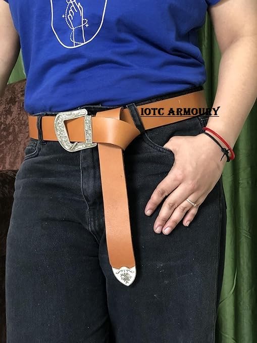 Medieval Viking Leather Belt with Solid Silver Buckle Ideal for LARP SCA Medieval Renaissance Knight Reenactment, Adult 5