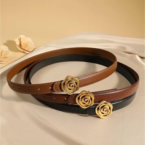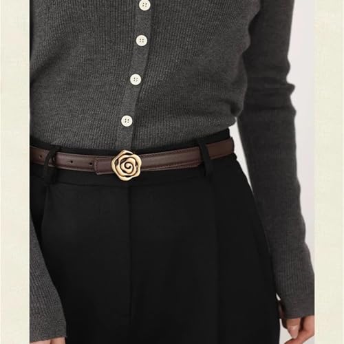 More information about Women's Rose Fashion Skinny Leather Lady Belt Gold Metal Buckle Decorative Dress Jeans
