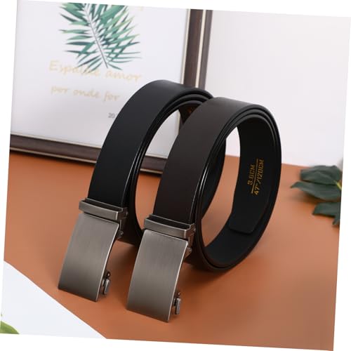 2pcs Adjustable Men Belts Vintage Automatic Buckle Brown Black for Jeans Dress Formal Attire 1