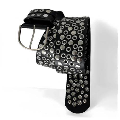 HOT ! Punk Rivet Studded Belt with Full Studs for Men and Women Classical and Cool Designs Great for Street Wear Pants Decors, Black, 110